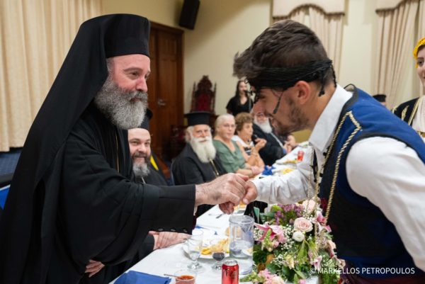 Στη διάρκεια του Δείπνου υποδοχής του Αρχιεπισκόπου Αυστραλίας, μέλη των χορευτικών συγκροτημάτων του Συνδέσμου Κρητών Νοτίου Αυστραλίας και μαθητές του ελληνικού σχολείου της Ενορίας – Κοινότητας Προφήτου Ηλιού παρουσίασαν παραδοσιακούς ελληνικούς χορούς, ενώ η εκκλησιαστική χορωδία «Άγιος Ιωάννης ο Δαμασκηνός» έψαλε εμμελώς ύμνους από την Ακολουθία του Εσπερινού του Αγίου Μεγαλομάρτυρος Μηνά.