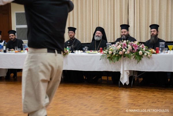 Στο Δείπνο παρακάθησαν, επίσης, οι Θεοφιλέστατοι κ. Σιλουανός και Βαρθολομαίος, οι Κληρικοί της Αρχιεπισκοπικής Περιφέρειας με τις Πρεσβυτέρες τους, και Πρόεδροι, μέλη Διοικητικών Συμβουλίων και εκπρόσωποι των Ενοριών – Κοινοτήτων, των Οργανισμών της Ιεράς Αρχιεπισκοπής στη Νότιο Αυστραλία, των Ιδρυμάτων Βασιλειάδος και Πρόνοιας και των Σχολείων του Αγίου Γεωργίου και του Αγίου Σπυρίδωνος.