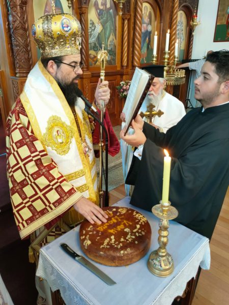 Την παραμονή της εορτής, ο Θεοφιλέστατος χοροστάτησε στον Μ. Εσπερινό, ενώ την κυριώνυμο ημέρα χοροστάτησε στον Όρθρο και προεξήρχε της Θείας Λειτουργίας.