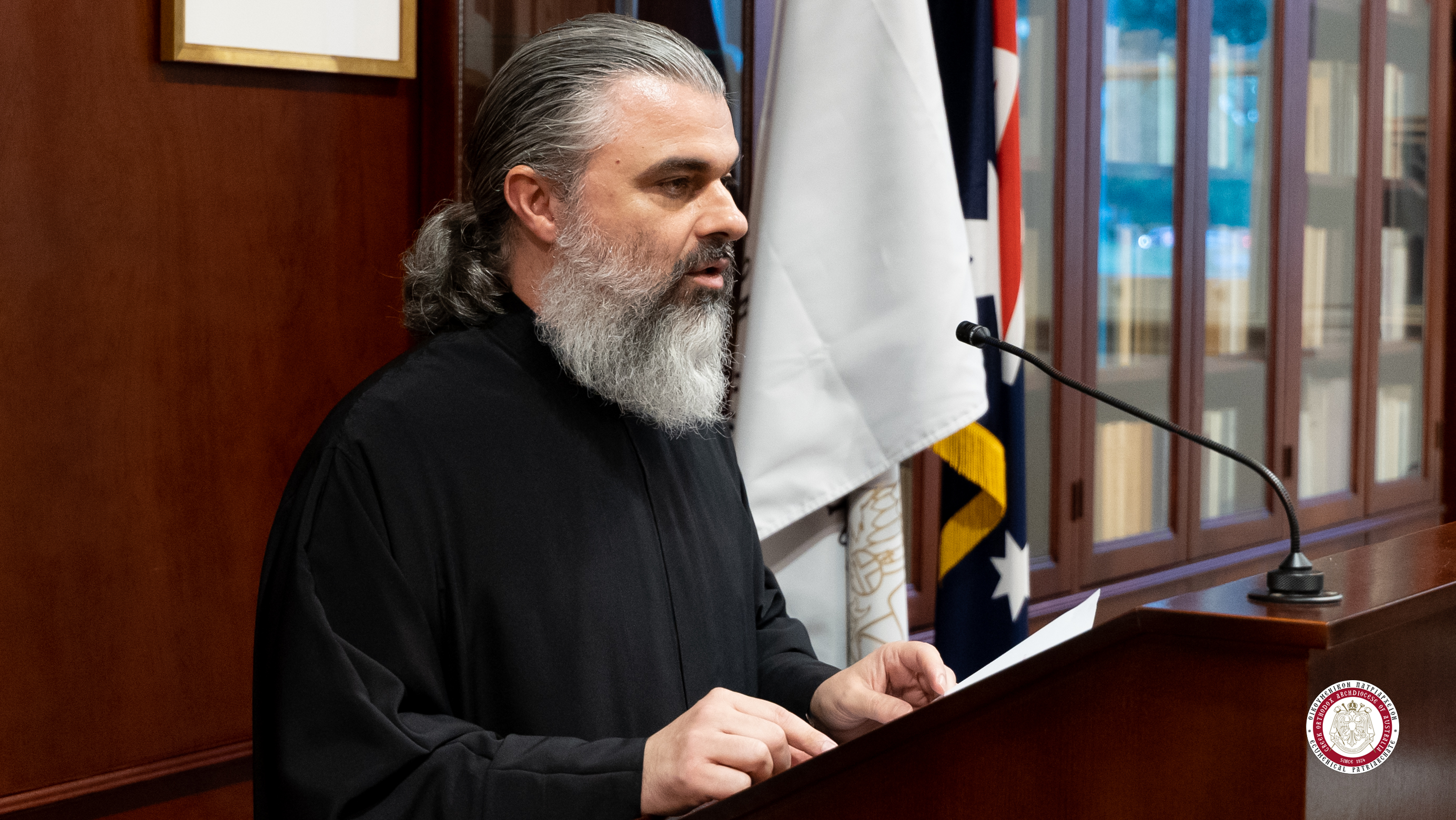 Την εκδήλωση άνοιξε ο Σεβασμιώτατος Αρχιεπίσκοπος Αυστραλίας κ.κ. Μακάριος, Κοσμήτορας της Θεολογικής Σχολής του Αποστόλου Ανδρέου, ο οποίος με την ομιλία του κατέδειξε την άμεση διασύνδεση της θεολογίας με την αγάπη προς τον Χριστό. “Η θεολογία δε μαθαίνεται μόνο, αλλά βιώνεται και, πολύ περισσότερο, αγαπιέται”, σημείωσε, μεταξύ άλλων, ο Σεβασμιώτατος, υπενθυμίζοντας ότι για τον Άγιο Ιωάννη τον Ευαγγελιστή και Θεολόγο, ο στενός αυτός δεσμός μεταξύ “αγάπης” και “θεολογίας” είναι αυτονόητος. Γι’ αυτό, όπως επισήμανε, σε έναν από τους ύμνους που ψάλλεται κατά την εορτή του Αγίου – και, συγκεκριμένα, στο Δοξαστικόν του Εσπερινού – ακούγεται η φράση: “πλήρης ὢν τῆς ἀγάπης, πλήρης γέγονε καὶ τῆς θεολογίας”.