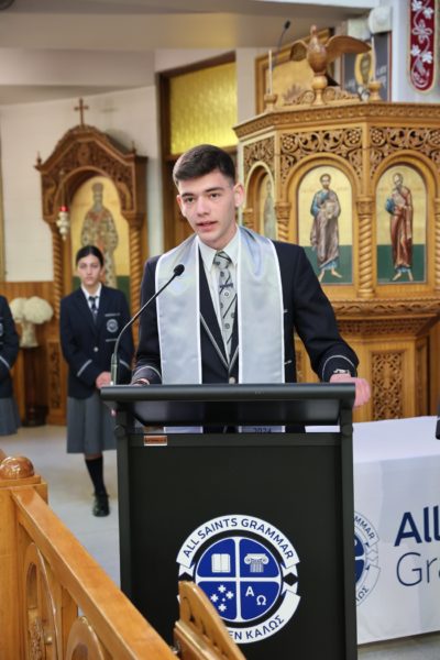 Το Κολλέγιο των Αγίων Πάντων στο Belmore του Σύδνεϋ διοργάνωσε την Πέμπτη, 19 Σεπτεμβρίου 2024, αποχαιρετιστήρια εκδήλωση για τους μαθητές και τις μαθήτριες του 12ου έτους (τρίτης τάξης του Λυκείου), η οποία περιελάμβανε Δοξολογία που τελέστηκε στον Ιερό Ναό των Αγίων Πάντων και τελετή απονομής βραβείων. Την εκδήλωση τίμησε με την παρουσία του ο Θεοφιλέστατος Επίσκοπος Μαγνησίας κ. Χριστόδουλος, ως εκπρόσωπος του Σεβασμιωτάτου Αρχιεπισκόπου Αυστραλίας κ. Μακαρίου, ο οποίος προέστη της τελεσθείσας Δοξολογίας.