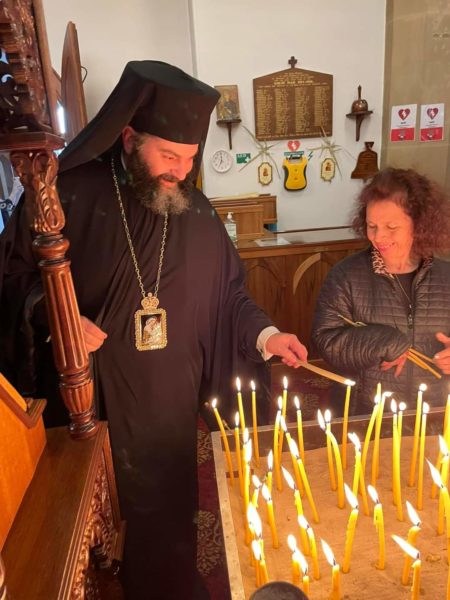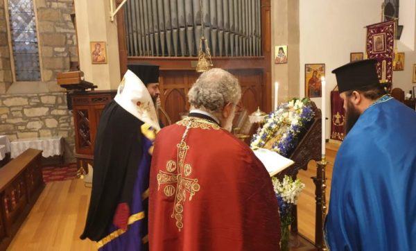 Ο Θεοφιλέστατος Επίσκοπος Χαριουπόλεως κ. Βαρθολομαίος τέλεσε την Ακολουθία της Β’ Στάσης των Χαιρετισμών προς την Υπεραγία Θεοτόκο το απόγευμα της Παρασκευής 18 Μαρτίου 2022, στον Ιερό Ναό Αγίας Τριάδος, στο Χόμπαρτ της Τασμανίας, βοηθούμενος από τον εφημέριο του Ναού, π. Δημήτριο Κατσή, και τον π. Νικόλαο Μποζίκη, ο οποίος υπηρετεί προσωρινά στην Ενορία του Αγίου Γεωργίου Χόμπαρτ.