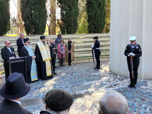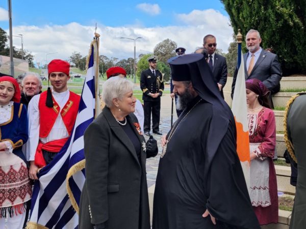 Στη συνέχεια, ο Θεοφιλέστατος κατέθεσε στεφάνι εκ μέρους της Ιεράς Αρχιεπισκοπής Αυστραλίας και του Σεβασμιωτάτου Αρχιεπισκόπου κ. Μακαρίου.