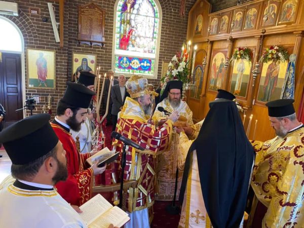 Την Κυριακή, 27 Δεκεμβρίου, ημέρα που η Εκκλησίας μας τιμάει τη μνήμη του Αγίου Πρωτομάρτυρος και Αρχιδιακόνου Στεφάνου, ο Σεβασμιώτατος Αρχιεπίσκοπος Αυστραλίας κ. Μακάριος μετέβη στον πανηγυρίζοντα φερώνυμο Ιερό Ναό στο Hurlstone Park του Σύδνεϋ, όπου χοροστάτησε κατά την Ακολουθία του Όρθρου και προεξήρχε της Θείας Λειτουργίας, συλλειτουργούντων των Θεοφιλεστάτων Επισκόπων Μιλητουπόλεως κ. Ιακώβου και Κυανέων κ. Ελπιδίου.
