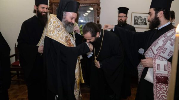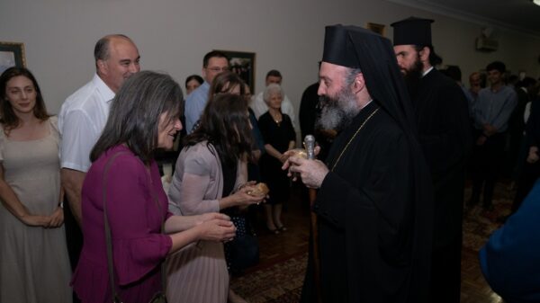 Στην τελετή, που πραγματοποιήθηκε την Πέμπτη, 2 Ιανουαρίου, στο Αρχιεπισκοπικό Μέγαρο, στο Ρέντφερν του Σύδνεϋ, παρέστησαν ο Σεβασμιώτατος Μητροπολίτης Σεβαστείας κ. Σεραφείμ, ο Πρωτοσύγκελος της Ιεράς Αρχιεπισκοπής, Θεοφιλέστατος Επίσκοπος Μελόης κ. Αιμιλιανός και πολλοί κληρικοί, ο Γενικός Πρόξενος της Ελλάδας στο Σύδνεϋ, κ. Χρήστος Καρράς, πρόεδροι και στελέχη των Οργανισμών της Αρχιεπισκοπής, μέλη των Εκκλησιαστικών Συμβουλίων, διευθυντές και εκπαιδευτικοί των ελληνορθόδοξων σχολείων κ.α.