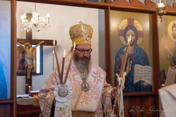 Τέλος, ο Επίσκοπος Κυανέων μετέφερε σε όλους τους πιστούς τις ευλογίες, την αγάπη και τους θερμούς χαιρετισμούς του Σεβασμιωτάτου Αρχιεπισκόπου Αυστραλίας κ. Μακαρίου.