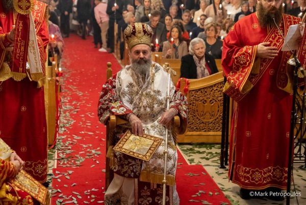 Από την εξέδρα έμπροσθεν του περικαλλούς Ναού, ο Σεβασμιώτατος ανήγγειλε το «Χριστός Ανέστη» στους χιλιάδες ομογενείς οι οποίοι προσήλθαν με ευλάβεια για να συνεορτάσουν τον θρίαμβο της ζωής επί του θανάτου.