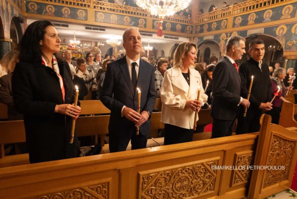 Επίσης, παρέστησαν ο κ. Δημήτριος Κούβελας, μέλος της Βουλής των Ελλήνων, ο κ. Σταύρος Βενιζέλος, Πρέσβης της Ελλάδος στην Αυστραλία, μετά της συζύγου του, ο κ. Ιωάννης Μαλλικούρτης, Γενικός Πρόξενος της Ελλάδος στο Σύδνεϋ, επίσης μετά της συζύγου του, η κ. Linda Burney, Ομοσπονδιακή Υπουργός για τις υποθέσεις των Αυτόχθονων Αυστραλών, ο κ. Steve Kamper, Υπουργός Μικρών Επιχειρήσεων, Περιουσίας και Πολυπολιτισμικότητας Νέας Νοτίου Ουαλίας, ο κ. David Coleman, Ομοσπονδιακός Βουλευτής και πρώην Υπουργός, κ. Mark Cure, Πολιτειακός Βουλευτής και πρώην Υπουργός ΝΝΟ, ο κ. Sam Elmir, Δήμαρχος του Δήμου Georges River, κ.ά..Στις 12 τα μεσάνυχτα, μέσα σε ατμόσφαιρα βαθιάς κατανύξεως, ο Σεβασμιώτατος έψαλε το πανευφρόσυνο άγγελμα: «Χριστός ανέστη εκ νεκρών…», ενώπιον του συγκεντρωθέντος πλήθους στον αύλειο χώρο της εκκλησίας.