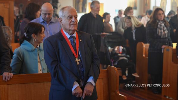 Στο τέλος της Θείας Λειτουργίας, τη συγκίνηση όλων επαύξησε η απονομή, από τον Αρχιεπίσκοπο Αυστραλίας κ. Μακάριο, του Οφφικίου του Αρχιμανδρίτου στον επί δεκαπενταετία διακονήσαντα την Ενορία Ιερομόναχο Αχίλλειο Καραμανίδη. Η ζωή του συνταξιοδοτηθέντος πλέον κληρικού είναι ταυτισμένη, όπως σημείωσε στη σύντομη προσφώνησή του ο Σεβασμιώτατος, με την πιο πρόσφατη ιστορία της ελληνορθόδοξης Ενορίας του Port Pirie. Κι αυτό, διότι είχε υπηρετήσει στον Ιερό Ναό του Αγίου Γεωργίου ως νεωκόρος, ως ψάλτης, ως επίτροπος και, τέλος, ως εφημέριός του.