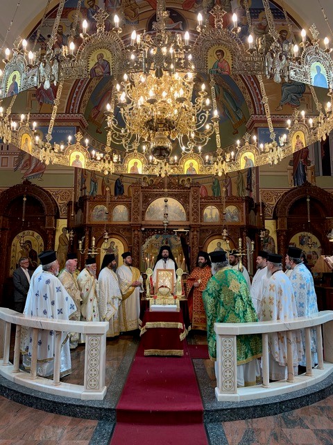 Στὴν Θεία Λειτουργία προεξήρχε ὁ Πανοσιολογιώτατος Ἀρχιμανδρίτης κ. Εὐμένιος Βασιλόπουλος, Ἀρχιεπισκοπικὸς Ἐπίτροπος Νόρθ-Κόουτ, πλαισιούμενος ὑπὸ τοῦ Ἱεροῦ Κλήρου τῆς Περιφερείας, μὲ παρουσία τῶν μαθητῶν τοῦ ἑλληνορθοδόξου Κολλεγίου τοῦ Ἁγίου Ἰωάννου Πρέστον καὶ πλήθους προσκυνητῶν.