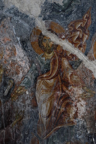 Οι χριστολογικές παραστάσεις που σώζονται είναι μόλις επτά, αλλά ιδιαίτερα μεγάλης κλίμακας (Ευαγγελισμός, Γέννηση, Υπαπαντή, Έγερση Λαζάρου, Βαϊοφόρος, Λίθος, Εις Άδου Κάθοδος). Οι παραστάσεις αυτές καλύπτουν το σύνολο των επιφανειών πάνω από την γένεση της καμάρας, ενώ στον Δ τοίχο ο κύκλος προφανώς συμπληρώνονταν με την Σταύρωση.
