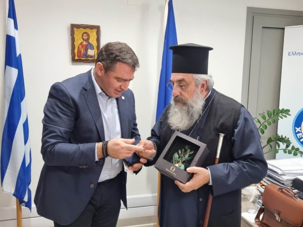 Ο κ. Σέγκος προσέφερε στον Αρχιεπίσκοπο Κρήτης και τον Μητροπολίτη Διδυμοτείχου αναμνηστικά δώρα από το Δήμο Χερσονήσου.