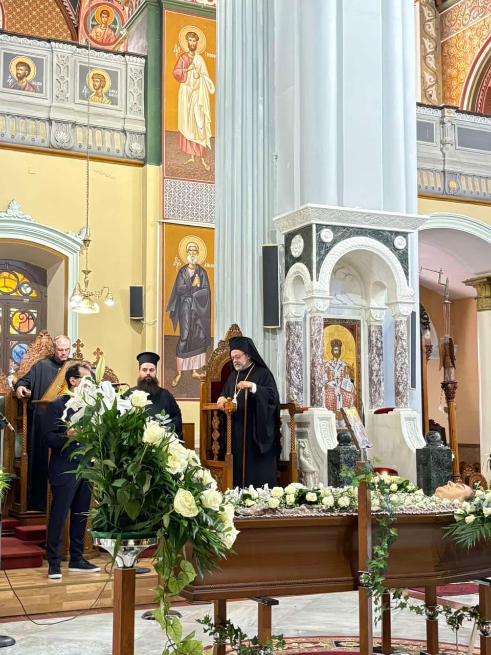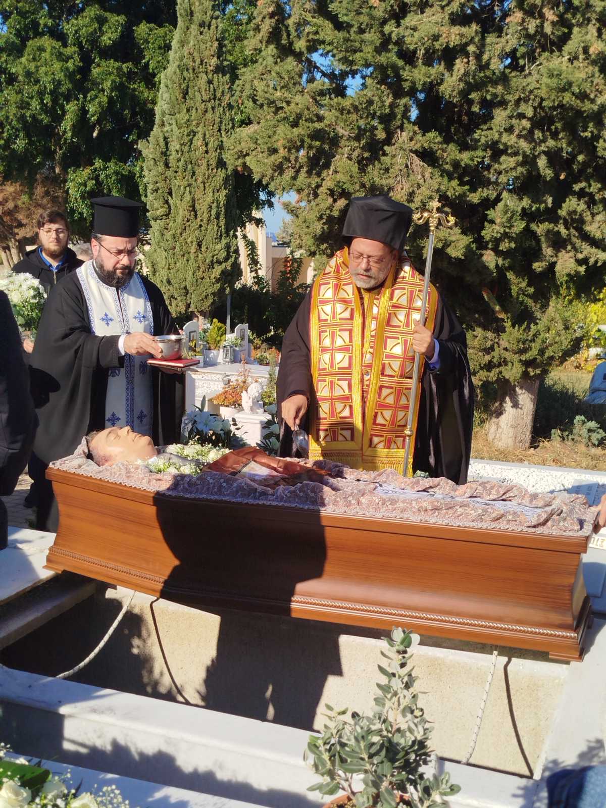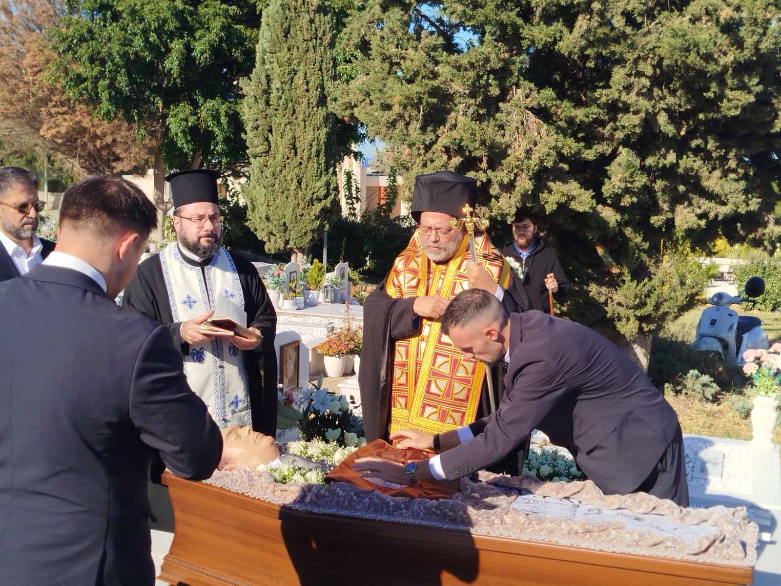 Η κηδεία τελέστηκε την Πέμπτη, 20 Νοεμβρίου, στον Μητροπολιτικό Ναό του Αγίου Μηνά, προεξάρχοντος του Αρχιεπισκόπου Κρήτης κ. Ευγενίου και με τη συμμετοχή του Μητροπολίτη Αρκαλοχωρίου κ. Ανδρέα και του Επισκόπου Κνωσού κ. Μεθοδίου.