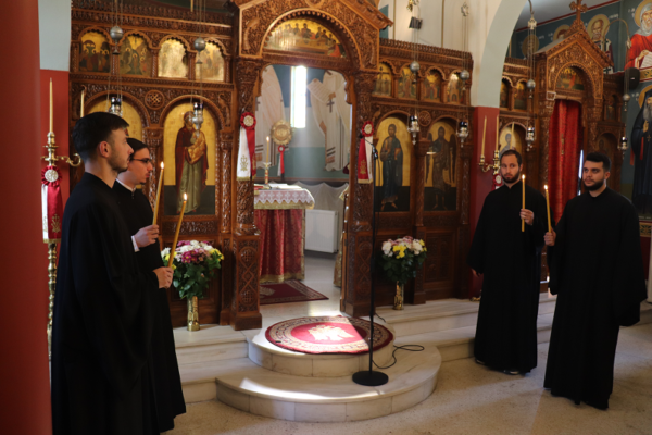 Συμπροσευχόμενοι παρέστησαν στο Ιερό Βήμα οι: Πρωτ. Αυγουστίνος Μπαϊρακτάρης, αν. Καθηγητής και Διευθυντής του ΠΕΜΨ, Αρχιμανδρίτης Κορνήλιος Αθανασάκης, Ιερατικώς Προϊστάμενος του Ιερού Μητροπολιτικού Ναούτου Αγίου Μηνά, και Γεώργιος Λαδουκάκης, Πρωτο-πρεσβύτερος του Οικουμενικού Θρόνου.