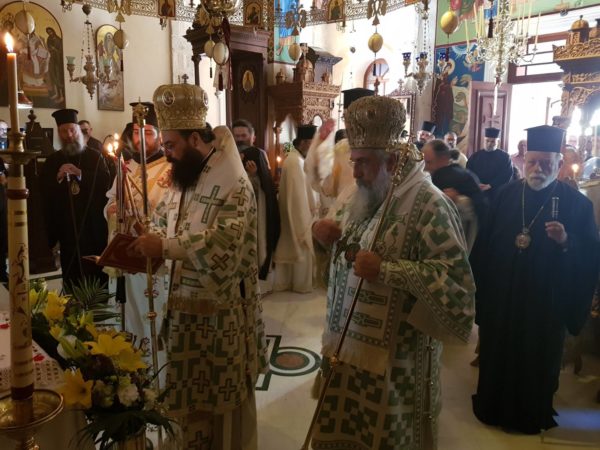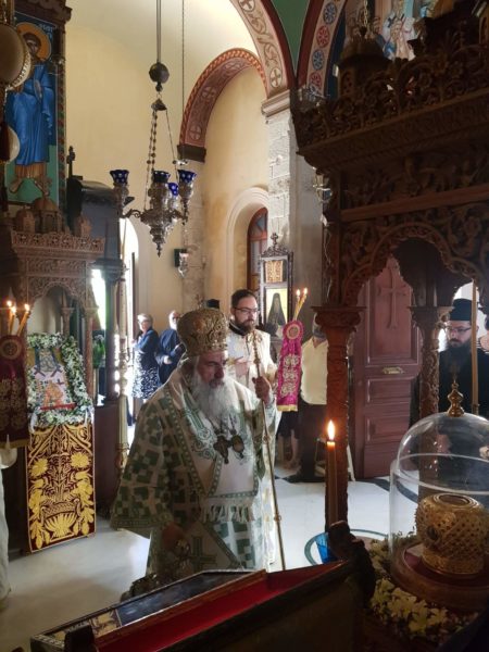 Το πρωί της Τρίτης 27 Ιουνίου, τελέσθηκε πανηγυρική Τρισαρχιερατική Θεία Λειτουργία κατόπιν σχετικής Συνοδικής Αποφάσεως, προεξάρχοντος του Σεβασμιωτάτου Αρχιεπισκόπου Κρήτης κ. Ευγενίου και συλλειτουργούντων, του Σεβασμιωτάτου Μητροπολίτου Πέτρας και Χερρονήσου κ. Γερασίμου και του Θεοφιλεστάτου Επισκόπου Κνωσού κ. Μεθοδίου. Παρέστησαν συμπροσευχόμενοι οι Σεβασμιώτατοι Μητροπολίτες Ανέων κ. Μακάριος, Κυδωνίας και Αποκορώνου κ. Δαμασκηνός και Ρεθύμνης και Αυλοποτάμου κ. Πρόδρομος.