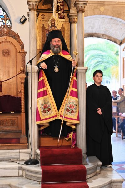 Προ της απολύσεως, ο Σεβασμιώτατος Αρχιεπίσκοπος Κρήτης κ. Ευγένιος, αφού ευχαρίστησε τους συλλειτουργούντες Αρχιερείς, αναφέρθηκε στις αξίες που μεταλαμπαδεύει στις επόμενες γενιές η παρουσία του Αγίου Τίτου και τόνισε την ανάγκη διασφάλισης των ιερών αυτών παρακαταθηκών.