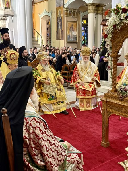 Την κυριώνυμο ημέρα, ο Σεβασμιώτατος Αρχιεπίσκοπος Κρήτης κ. Ευγένιος προεξήρχε της Θείας Λειτουργίας στον Ιερό Μητροπολιτικό Ναό του Αγίου Μηνά, συλλειτουργούντων των Σεβασμιωτάτων Μητροπολιτών Διοσπόλεως κ. Εμμανουήλ, Ζακύνθου κ. Διονυσίου, Λαρίσης και Τυρνάβου κ. Ιερωνύμου, Κυδωνίας και Αποκορώνου κ. Δαμασκηνού, Ιεραπύτνης και Σητείας κ. Κυρίλλου, Μπραζαβίλ και Γκαμπόν κ. Θεοδώρου, του Θεοφιλεστάτου Επισκόπου Κνωσού κ. Μεθοδίου, και πλήθους κληρικών της Ιεράς Αρχιεπισκοπής και άλλων Ιερών Μητροπόλεων.