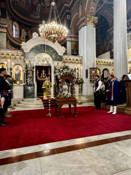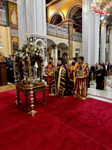 Προ της Απολύσεως του Πανηγυρικού Εσπερινού ο Σεβασμιώτατος Αρχιεπίσκοπος Κρήτης κ. Ευγένιος, με λόγια βαθιάς εκτίμησης και ευγνωμοσύνης, ευχαρίστησε τον χοροστατούντα Σεβασμιώτατο Μητροπολίτη Λαρίσης και Τυρνάβου κ. Ιερώνυμο, καθώς και τους Σεβασμιωτάτους Αρχιερείς του Πατριαρχείου Αλεξανδρείας, της Εκκλησίας της Ελλάδος και της Εκκλησίας της Κρήτης, για την τιμητική τους παρουσία στην εορτή του δαφνοστεφούς στρατιώτου του Χριστού, του μεγάλαθλου και πανένδοξου Αγίου Μηνά.