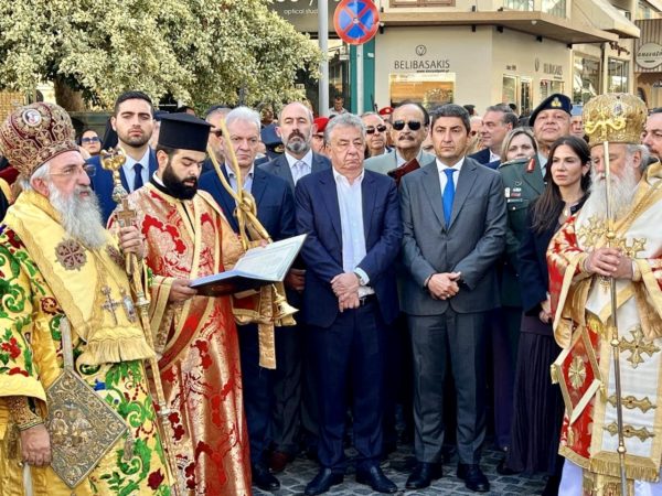 Με συγκίνηση τους απηύθυνε εγκάρδιες ευχές, ώστε ο Άγιος Τριαδικός Θεός να ενισχύει και να φωτίζει το ιερό έργο τους και να τους χαρίζει υγεία και δύναμη στα ευθυνοφόρα καθήκοντά τους και στην ευλογημένη αποστολή τους. Στο τέλος της προσλαλιάς του και πριν δώσει τον λόγο στον χοροστατούντα Ιεράρχη, ο Σεβασμιώτατος Αρχιεπίσκοπος Κρήτης ευχαρίστησε τον ευλογημένο κρητικό λαό, ο οποίος «ἐν μέσῳ πικρᾶς δουλείας» ανήγειρε τον Περικαλλή και Περίπυστο ναό του αγίου Μηνά στο Ηράκλειο για να εκφράσει την ευλάβεια, την πίστη και την ευγνωμοσύνη του και ο οποίος -όπως χαρακτηριστικά ανέφερε- «ξέρει να τιμά τον αληθινό του ηγέτη, τον πραγματικό του άρχοντα, αυτόν που δεν τον πρόδωσε ποτέ». Στην συνέχεια προέτρεψε τον Σεβασμιώτατο Μητροπολίτη Λαρίσης και Τυρνάβου να απευθύνει έναν σύντομο χαιρετισμό στον υπέροχο και ηρωικό κρητικό λαό, στον λαό του Αγίου Μηνά.