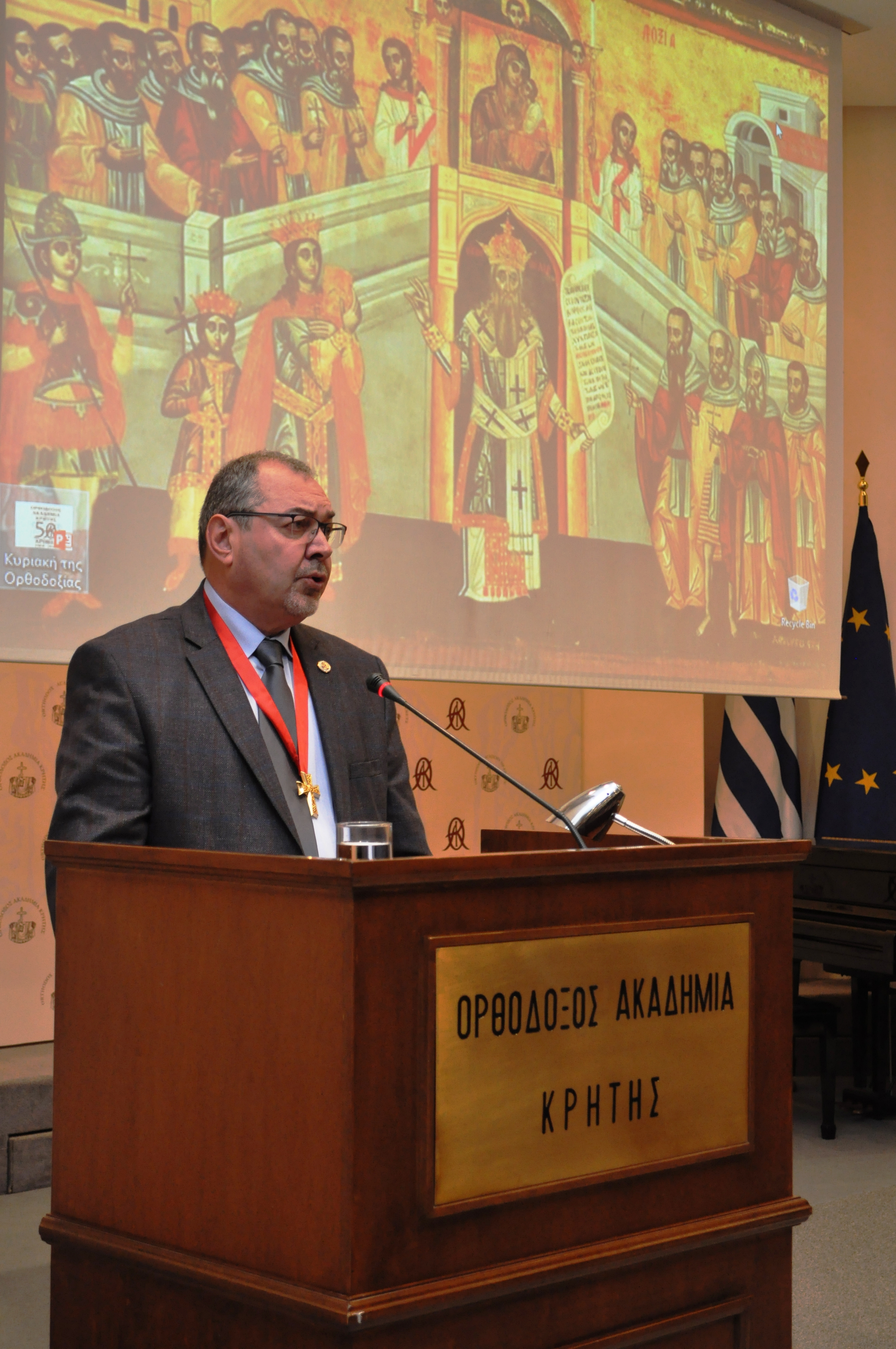 Με λαμπρότητα και ιερότητα, εορτάστηκε η ΚΥΡΙΑΚΗ ΤΗΣ ΟΡΘΟΔΟΞΙΑΣ, ημέρα η οποία έχει καθιερωθεί ως επίσημη εορτή της Ορθοδόξου Ακαδημίας Κρήτης (ΟΑΚ), αλλά και ως μία ευκαιρία προβληματισμού για το έργο και τη μαρτυρία του Ιδρύματος, όπως αυτό εκφράστηκε μέσα από την παρακαταθήκη των Ιδρυτών του.
