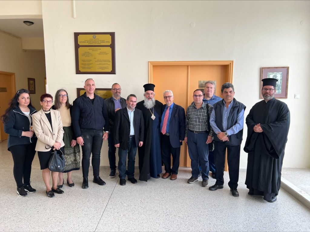 Ακολούθησε επίσκεψη του Αρχιεπισκόπου Κρήτης κ. Ευγενίου στο γραφείο του Προέδρου, όπου σε ευφρόσυνο κλίμα, αντηλλάγησαν χρήσιμες σκέψεις με τους διδάσκοντες, συνταυτιζόμενες με το δικό του αδιάλειπτο ενδιαφέρον και την προσωπική του αγωνία για το μέλλον της Ακαδημίας, Επιλογικά συνέτρεξαν, ως απαύγασμα της τιμητικής επίσκεψης, η αναμνηστική φωτογραφία και οι ποικίλοι φίλιοι χαιρετισμοί, στο πνεύμα των αναστάσιμων ημερών.
