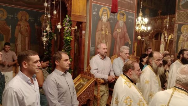 Ο Δήμαρχος Ηρακλείου αντάλλαξε ευχές με πολίτες και συμμετείχε στον Εσπερινό μαζί με τους Αντιδημάρχους Νίκο Γιαλιτάκη και Γιάννα Καλονάκη, τον Πρόεδρο της ΔΕΠΑΝΑΛ Κώστα Βαρβεράκη, τον Εντεταλμένο Σύμβουλο Νίκο Κονταράκη, τη Γενική Γραμματέα του Δήμου Μαρία Σκραφνάκη, τον Πρόεδρο της Τοπικής Κοινότητας Αγίου Μύρωνα Γιάννη Σηφάκη, την Κοινοτική Σύμβουλο Ελένη Χαιρέτη, τους συνεργάτες Ειδικούς Συμβούλους Κώστα Πιλαφτσή και Σπύρο Δοκιανάκη.