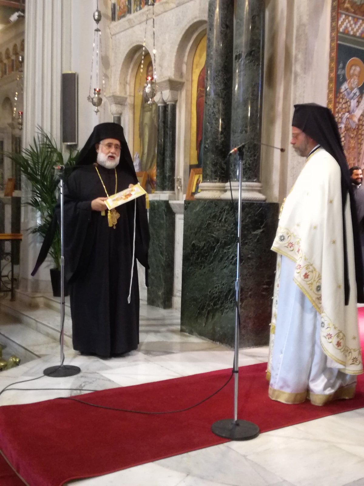Εκ μέρους του Αρχιεπισκόπου Κρήτης τον Μ. Πρωτοσύγκελλο προσφώνησε ο Θεοφ. Επίσκοπος Κνωσού κ. Πρόδρομος, Αρχιγραμματέας της Επαρχιακής Συνόδου της Εκκλησίας Κρήτης.