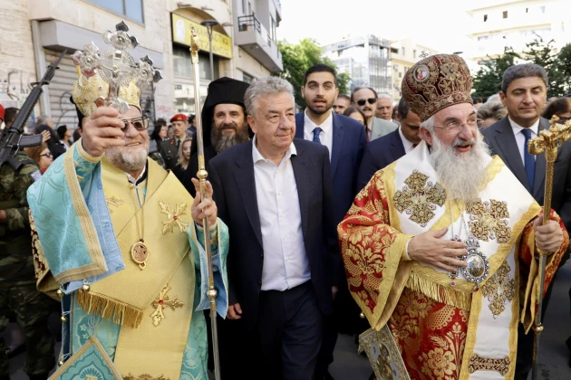 Οι εκδηλώσεις κορυφώθηκαν με τη λιτανεία του Ιερού Λειψάνου και της Εικόνας του Αγίου Μεγαλομάρτυρος Μηνά στις οδούς: Κυρίλλου Λουκάρεως, 1821, Καλοκαιρινού και Αγίου Μηνά.
