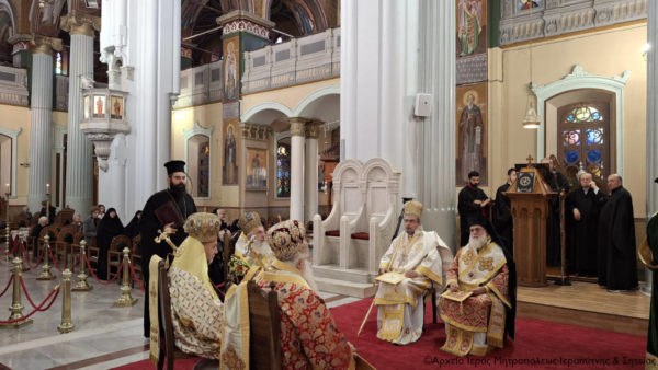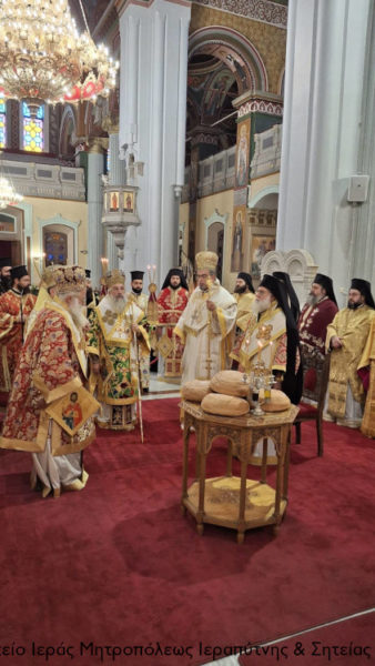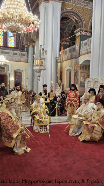Στο Πολυαρχιερατικό Συλλείτουργο που έλαβε χώρα στον Ιερό Μητροπολιτικό Ναό Αγίου Μηνά Ηρακλείου, προεξάρχοντος του εορτάζοντος Σεβασμιωτάτου Αρχιεπισκόπου Κρήτης κ. Ευγενίου Β΄, έλαβε μέρος και ο Σεβ. Μητροπολίτης Ιεραπύτνης και Σητείας κ. Κύριλλος, με τη συμμετοχή των Σεβασμιωτάτων Μητροπολιτών εκ του Πατριαρχείου Αλεξανδρείας Διοσπόλεως κ. Εμμανουήλ και Λιβύης κ. Γενναδίου, και του Θεοφιλεστάτου Επισκόπου Κνωσού κ. Μεθοδίου. Συμπροσευχόμενος από του Ιερού Βήματος παρέστη ο Σεβ. Μητροπολίτης Σελευκείας κ. Θεόδωρος του Οικουμενικού Πατριαρχείου, Καθηγητής της Ανωτάτης Πατριαρχικής Ακαδημίας Κρήτης.