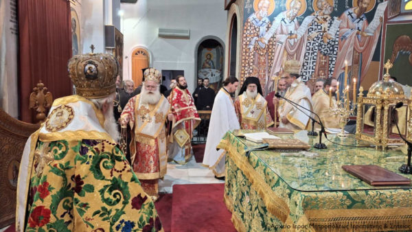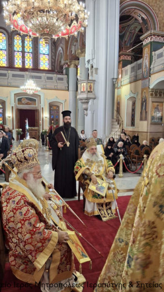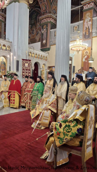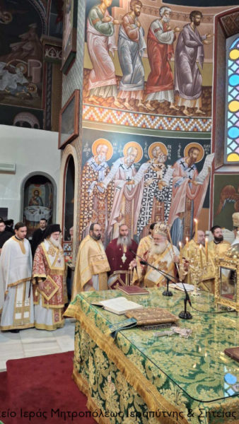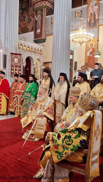 Στο Πολυαρχιερατικό Συλλείτουργο που έλαβε χώρα στον Ιερό Μητροπολιτικό Ναό Αγίου Μηνά Ηρακλείου, προεξάρχοντος του εορτάζοντος Σεβασμιωτάτου Αρχιεπισκόπου Κρήτης κ. Ευγενίου Β΄, έλαβε μέρος και ο Σεβ. Μητροπολίτης Ιεραπύτνης και Σητείας κ. Κύριλλος, με τη συμμετοχή των Σεβασμιωτάτων Μητροπολιτών εκ του Πατριαρχείου Αλεξανδρείας Διοσπόλεως κ. Εμμανουήλ και Λιβύης κ. Γενναδίου, και του Θεοφιλεστάτου Επισκόπου Κνωσού κ. Μεθοδίου. Συμπροσευχόμενος από του Ιερού Βήματος παρέστη ο Σεβ. Μητροπολίτης Σελευκείας κ. Θεόδωρος του Οικουμενικού Πατριαρχείου, Καθηγητής της Ανωτάτης Πατριαρχικής Ακαδημίας Κρήτης.
