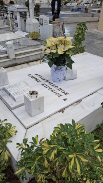 Τη μεσημβρία ο Σεβ. κ. Κύριλλος συνόδευσε τον εορτάζοντα Αρχιεπίσκοπο κ. Ευγένιο στο κοιμητήριο της πόλεως στον Ιερό Ενοριακό Ναό Αγίου Κωνσταντίνου, όπου τέλεσαν Τριάγιο επί του τάφου του αοιδίμου Πρωθιεράρχου της Εκκλησίας Κρήτης κυρού Ευγενίου του Α´, υπέρ αναπαύσεως της ψυχής αυτού.