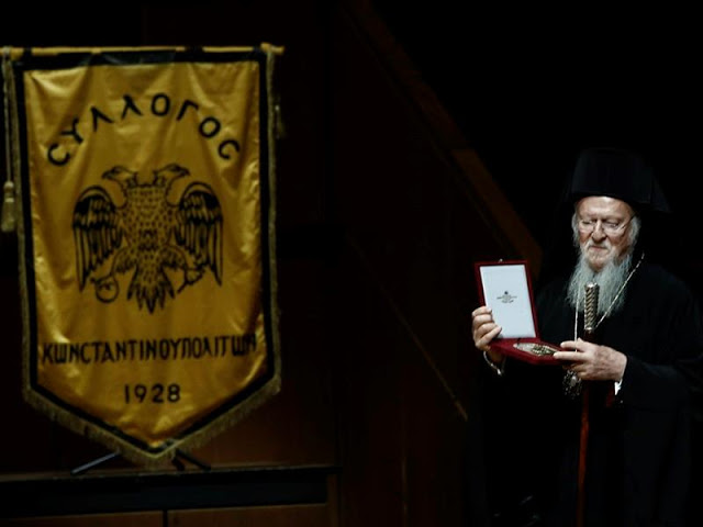 Παρουσία του Προέδρου της Δημοκρατίας, Προκόπη Παυλόπουλου, πραγματοποιήθηκε το απόγευμα της Πέμπτης (4-10-2018) στην αίθουσα «Χρήστος Λαμπράκης» του Μεγάρου Μουσικής Αθηνών, η τελετή βράβευσης του Οικουμενικού Πατριάρχη Βαρθολομαίου από τη Βουλή των Ελλήνων και τον Σύλλογο Κωνσταντινουπολιτών, για την πολύπλευρη προσφορά του στην προστασία του περιβάλλοντος, ενώ παράλληλα ανακηρύχθηκε ισόβιος επίτιμος πρόεδρος του εν Αθήναις Συλλόγου Κωνσταντινουπολιτών.