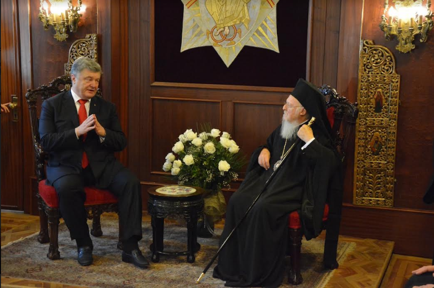 Είμαστε πεπεισμένοι, εδώ εις το Οικουμενικόν Πατριαρχείο, ότι η απόφασή μας θα οδηγήσει τον Ουκρανικόν λαό και τους εκεί ορθοδόξους πιστούς εις την περαιτέρω ενότητα, την οποίαν εστερήθησαν τα τελευταία περίπου τριάντα χρόνια, και ότι η καινούργια Αυτοκέφαλος Εκκλησία της Ουκρανίας θα συσπειρώσει περί τον εαυτόν της, σχεδόν όλους του Ορθοδόξους πιστούς της χώρας. Και έτσι αυτή η Εκκλησία, η Αυτοκέφαλος, θα εισέλθει στην οικογένεια των Ορθοδόξων Αυτοκεφάλων Εκκλησιών και θα εργαζόμεθα όλοι μαζί για το καλό των πιστών μας και για τη δόξα του ονόματος του Κυρίου.», είπε ο Οικουμενικός Πατριάρχης, ο οποίος ευχαρίστησε τον Πρόεδρο της Ουκρανίας για την παραχώρηση στην Μητέρα Εκκλησία του περικαλλούς Ι.Ν. του Αγίου Ανδρέου στο Κίεβο, «για να είναι εκεί η μόνιμος παρουσία της Μητρός σας Εκκλησίας της Κωνσταντινουπόλεως εις την Πρωτεύουσαν της Ουκρανίας», και εξέφρασε την ευχή «να με αξιώσει ο Κύριος να επισκεφθώ εις το εγγύς μέλλον, όπως ελπίζω, για μια ακόμη φορά, την ωραία και φιλόξενη χώρα σας [την Ουκρανία]». Ζήτησε δε, από τον Πρόεδρο Poroshenko, να μεταφέρει σε ολόκληρο τον Ουκρανικό λαό την ευλογία της Μητρός του Εκκλησίας και την αγάπη του Πατριάρχου.