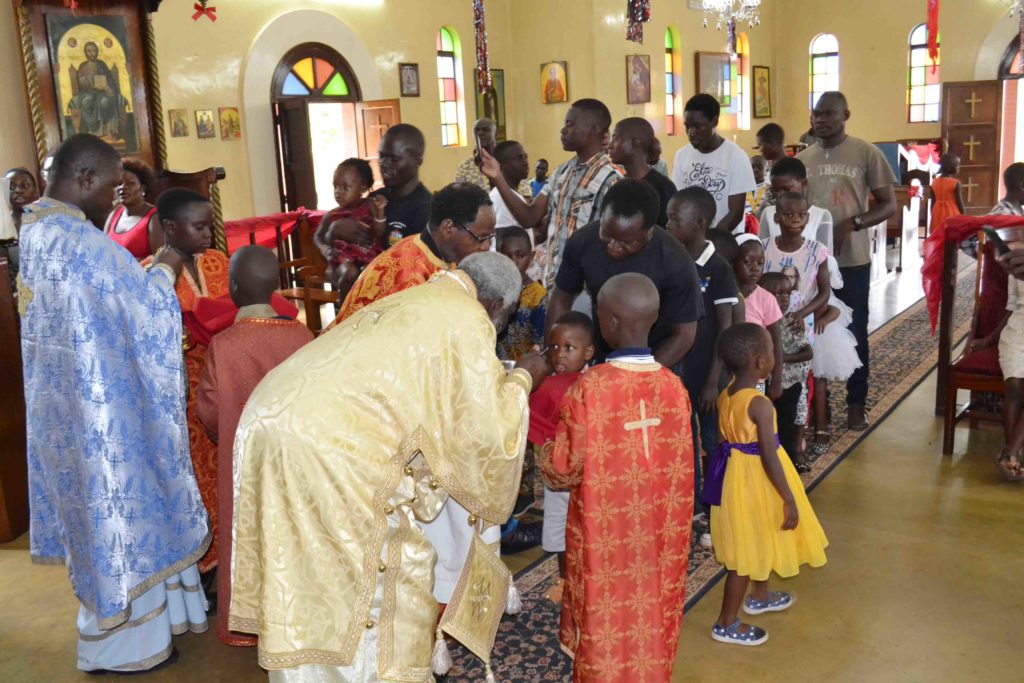 Η εορτή άρχισε με την τέλεση της Θείας Λειτουργίας στην οποία ιερούργησε ο Σεβασμιώτατος Μητροπολίτης Καμπάλας και Πάσης Ουγκάντας κ. Ιωνάς. Στο κήρυγμα του ο Σεβασμιώτατος τόνισε μεταξύ άλλων ότι “ο Κύριος μας αγαπάει και εμείς οφείλουμε να Τον αγαπάμε ακόμα περισσότερο!”