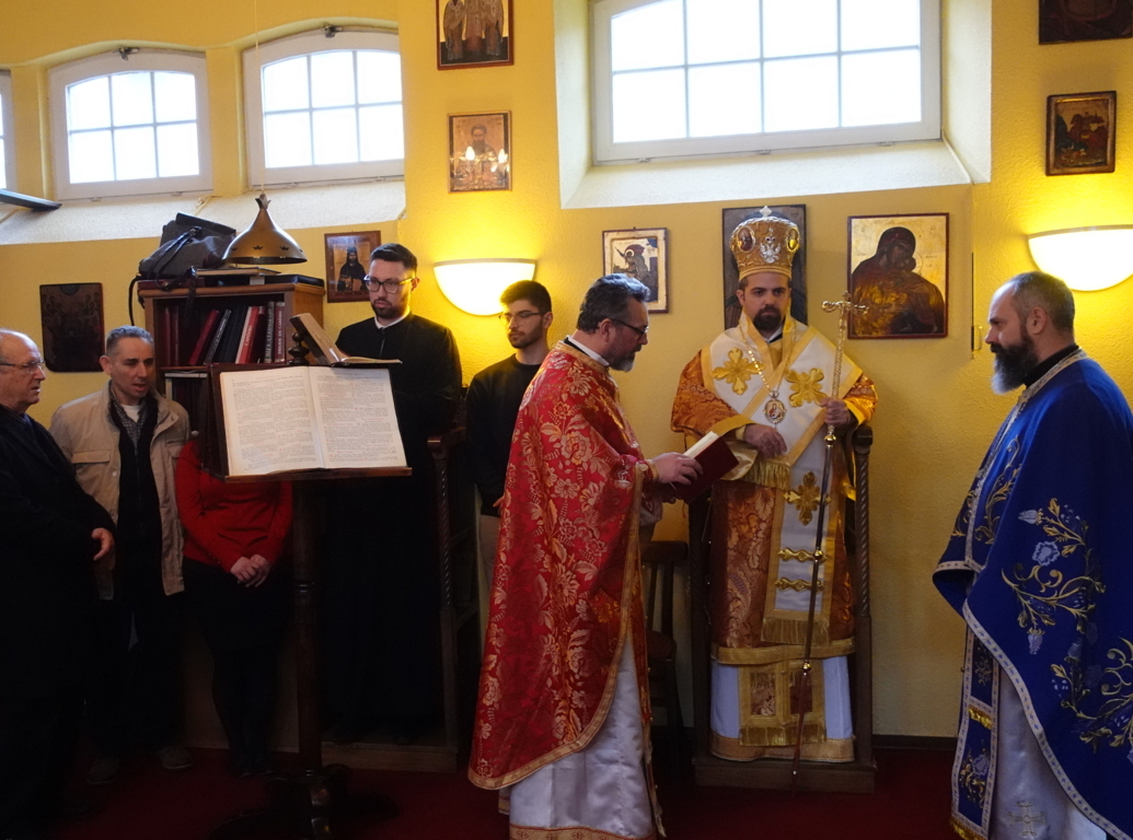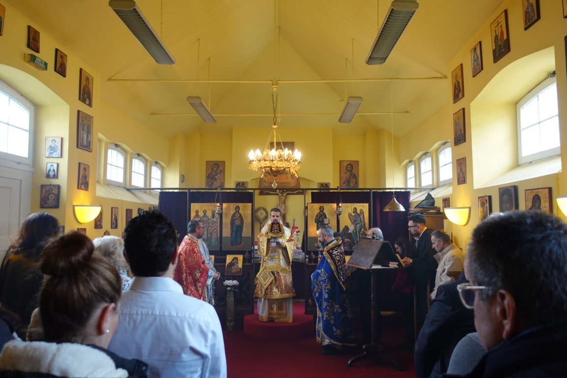 Το πρωί της Κυριακής ετελέσθη η Θεία Λειτουργία στον πανηγυρίζοντα Ι. Ναό των Τριών Ιεραρχών. Χοροστάτησε στον Όρθρο και προεξήρχε της Θείας Λειτουργίας ο Θεοφιλέστατος Επίσκοπος Μελιτηνής κ. Μάξιμος, συμπαραστατούμενος υπό του Προϊσταμένου του Ι. Ναού, Πρωτοπρεσβυτέρου Χρήστου Φιλιώτη και του Προϊσταμένου της Βουλγαρικής Ορθόδοξης Ενορίας Στρασβούργου Πρωτοπρεσβυτέρου Georgi Georgiev. Ο Επίσκοπος Μελιτηνής ομίλησε για το έργο των Τριών Ιεραρχών και μετέφερε στο εκκλησίασμα τις ευχές του Σεβασμιωτάτου Μητροπολίτου Γαλλίας κ. Εμμανουήλ.
