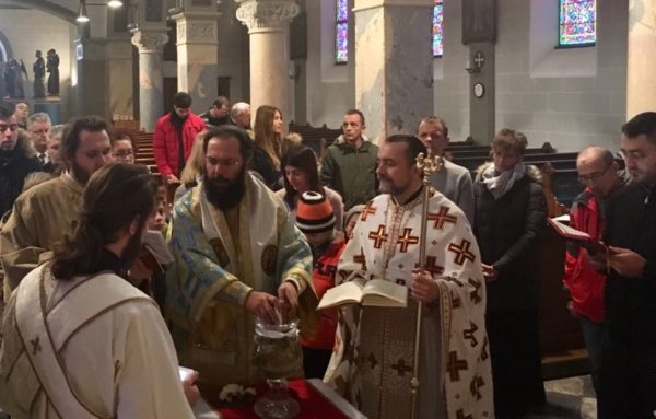 Τήν ἑπομένη, ἤτοι Κυριακή 13 Ἰανουαρίου 2019, ὁ Σεβασμιώτατος Μητροπολίτης Αὐστρίας, Ἔξαρχος Οὑγγαρίας καί Μεσευρώπης κ. Ἀρσένιος, προέστη τῆς Θείας Λειτουργίας καί τοῦ Μεγάλου Ἁγιασμοῦ στήν ρωμαιοκαθολική μονή Mehrerau στό Bregenz πλαισιούμενος ὑπό τοῦ Πρεσβυτέρου Goran Eric καί τοῦ Ἱεροδιακόνου Βαρθολομαίου Ungureanu παρουσίᾳ, παρά τίς ἄσχημες καιρικές συνθῆκες, πλήθους πιστῶν. Στό κήρυγμά του ὁ Σεβασμιώτατος Μητροπολίτης μας ἀναφέρθηκε στήν σημασία τοῦ Μεγάλου Ἁγιασμοῦ. Τό ὕδωρ, τόνισε, δέν εἶναι μόνον ἀπαραίτητο γιά τήν καθημερινή ἐπιβίωση τοῦ ἀνθρώπου, ἀλλά διά τοῦ ἁγιασμοῦ του ἀνακαινίζεται μέ τήν χάρη τοῦ Ἁγίου Πνεύματος ἡ φύσις καί ἡ καθόλου ὑλική δημιουργία. Μάλιστα οἱ χριστιανοί τόν διατηροῦμε στίς οἰκίες μας παίρνοντας τήν εὐλογία καί τήν συμπαράσταση τοῦ Θεοῦ. Μετά τό πέρας τῆς Θείας Λειτουργίας ἁπαξάπαντες μετέβησαν σέ παρακείμενη λίμνη (Bodensee) καί μετεῖχαν τῆς Ἀκολουθίας τοῦ Ἁγιασμοῦ τῶν Ὑδάτων καί τῆς Φύσεως. Μάλιστα κάποιος τολμηρός κολυμβητής ἀψήφισε τίς χαμηλές θερμοκρασίες καί βούτηξε στά παγωμένα ὕδατα πιάνοντας τόν Τίμιο Σταυρό.