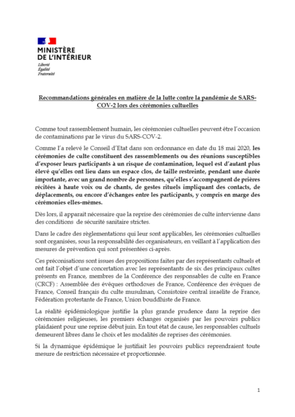 Σύμφωνα με την απόφαση της Γαλλικής  Κυβέρνησης και την ανακοίνωση της Ιεράς Μητρόπολης Γαλλίας οι πιστοί θα μπορούν να επιστρέψουν στους Ιερούς Ναούς για να συμμετέχουν στη Θεία Λειτουργία από την Τετάρτη 3 Ιουνίου 2020.