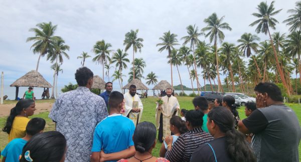Μετά το πέρας της Θείας Λειτουργίας που τελέστηκε την Κυριακή 14 Ιανουαρίου 2024, απόδοση της εορτής των Θεοφανείων, στον Ιερό Ναό των Αγίων Αθανασίου και Νικολάου στην πόλη Λαμπάσα των νησιών Φίτζι, τελέστηκε στην παραλία Κοροβάτου ο Αγιασμός των υδάτων και η κατάδυση του Τιμίου Σταυρού, από τον π. Μιχαήλ Ψαρομμάτη, φιλοξενούμενο κληρικό της Ιεράς Αρχιεπισκοπής Αυστραλίας, συμπαραστατούμενο από τον εφημέριο της τοπικής ενορίας της Λαμπάσα, π. Αλέξιο Nand.