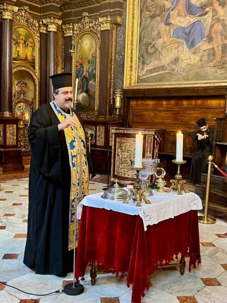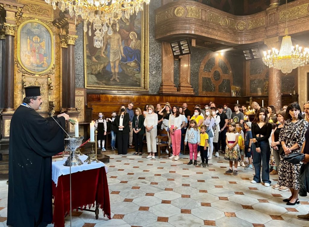 Πλήθος παιδιών κάθε ηλικίας, γονέων και συγγενών κατέκλυσαν τον Ναό, παρακολούθησαν με ευλάβεια την Ακολουθία και αγιάσθηκαν από τον π. Ιωάννη, ο οποίος μετέφερε τις ευχές και τις ευλογίες του Σεβασμιωτάτου στους μικρούς μαθητές και ευχήθηκε η χάρις του Αγίου Τριαδικού Θεού να συνοδεύει μικρούς και μεγάλους κατά τη νέα σχολική χρονιά. Προέτρεψε τους μαθητές να αξιοποιήσουν τη φοίτησή τους στην Ελληνική Εθνική Σχολή παρακολουθώντας τα μαθήματα των Ελληνικών και των Θρησκευτικών.