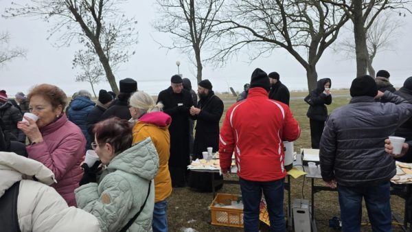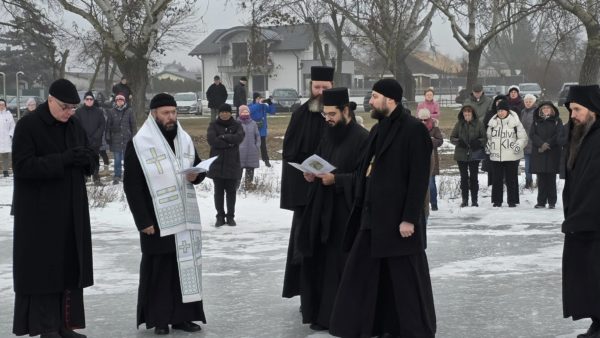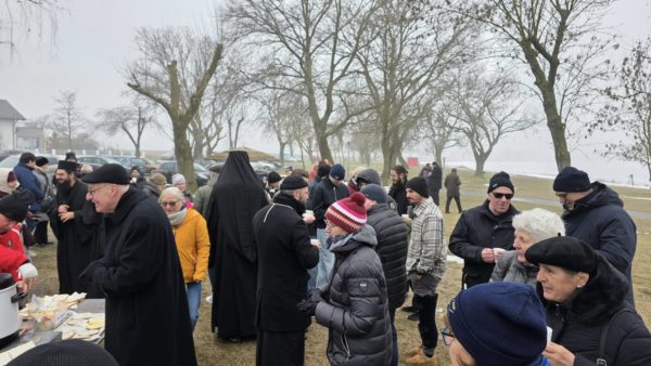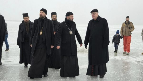 Μετά το τέλος της Θείας Λειτουργίας, ο Σεβασμιώτατος με τον Θεοφιλέστατο, τους πατέρες της Μονής και τους πιστούς της περιοχής, πορεύθηκαν στην λίμνη Zicksee, όπου ετελέσθη ο αγιασμός των υδάτων. Κατά τον Καθαγιασμό των Υδάτων παρευρέθηκε και ο Ρωμαιοκαθολικός Επίσκοπος Eisenstadt κ. Αιγίδιος Zsifkovics, που ευχήθηκε με τη σειρά του σε όλους για το νέο έτος, εξέφρασε την επιθυμία του να συνεχισθεί η αγαστή συνεργασία με την Ιερά Μητρόπολη Αυστρίας και την Ιερά Μονή Αγίας Σκέπης και Αγίου Παϊσίου του Αγιορείτου. Ο Σεβασμιώτατος ευχαρίστησε τον Επίσκοπο για την παρουσία του, για την αδελφική πορεία και ευχήθηκε σε όλους τους παρευρισκομένους. Εν συνεχεία προσφέρθηκε κέρασμα προς όλους τους παρόντες, σε πνεύμα αγάπης και συναλληλίας.