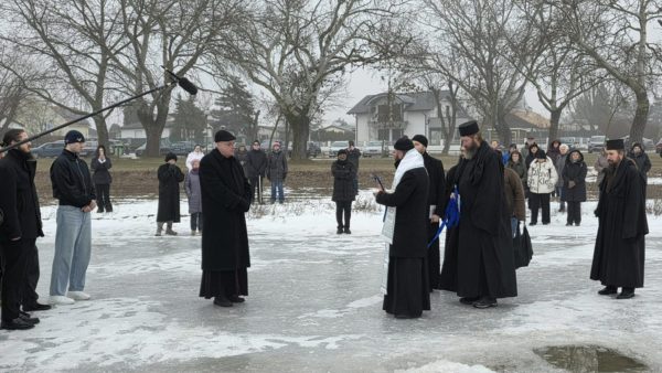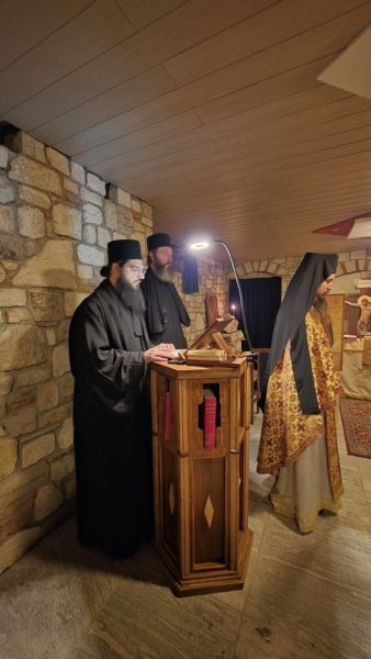 Το Σάββατο, 24 Ιανουαρίου 2026, όπου η Εκκλησία μας τίμησε τη μνήμη της Οσίας Ξένης και των θεραπενίδων αυτής, ο Σεβασμιώτατος Μητροπολίτης Αυστρίας κ. Αρσένιος προέστη της Αρχιερατικής Θείας Λειτουργίας στην Ιερά Μονή Αγίας Σκέπης της Υπεραγίας Δεσποίνης ημών Θεοτόκου και Αειπαρθένου Μαρίας και του Αγίου Παϊσίου του Αγιορείτου στο Sankt Andrä am Zicksee, συλλειτουργούντος του Θεοφιλεστάτου Επισκόπου Αρίστης κ. Μαξίμου. Τους Αρχιερείς συνόδευσε λειτουργικά ο εφημέριος της Μονής Ιερομόναχος Ανδρέας Bolla. Μετά τη Θεία Λειτουργία μετέβησαν με πλήθος προσκυνητών στην παρακείμενη λίμνη Zicksee, όπου ο Σεβασμιώτατος τέλεσε τον καθαγιασμό των Υδάτων και τη ρίψη του Σταυρού σύμφωνα με την παράδοση. Στην Ακολουθία ήταν παρών και ο Ρωμαιοκαθολικός Επίσκοπος Eisenstadt κ. Αιγίδιος Zsifkovics. Ακολούθησε συνάντηση με τους προσκυνητές, ενώ ο Σεβασμιώτατος παρέμεινε και έδωσε την ευκαιρία στην αδελφότητα να μοιραστεί μαζί του τις σκέψεις και τους λογισμούς.