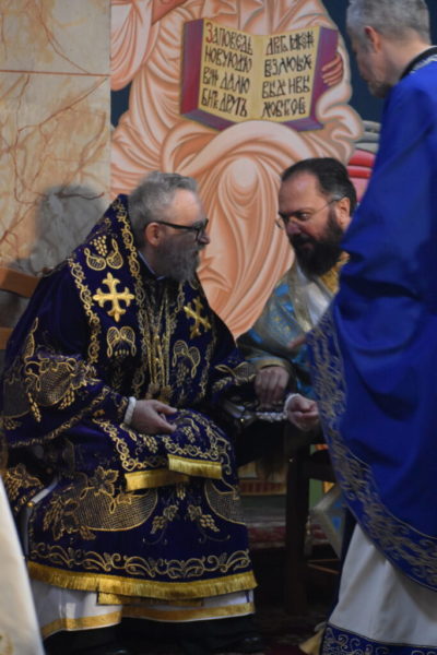 Τη συνοδεία του Σεβασμιωτάτου υπεδέχθηκε στον Ιερό Ναό Αγίου Νικολάου Σέγκεντ ο Θεοφιλέστατος κ. Λουκιανός, ο Εφημέριος του Ναού Πρωτοπρεσβύτερος Dalibor Milenković και οι επιτόπιοι κληρικοί. Της Αρχιερατικής Θείας Λειτουργίας προεξήρχε ο Σεβασμιώτατος Μητροπολίτης Αυστρίας και ‘Έξαρχος Ουγγαρίας κ. Αρσένιος συλλειτουργούντων των Θεοφιλεστάτων Παϊσίου Απαμείας και Βουδινίου κ. Λουκιανού, συμπαραστατουμένων από τους παρόντας κληρικούς του Οικουμενικού Πατριαρχείου και του Πατριαρχείου Σερβίας. Μετά το πέρας της Θείας Λειτουργίας, τελέσθηκε επιμνημόσυνος δέηση υπέρ αναπαύσεως της ψυχής του μακαριστού Πατριάρχου Σερβίας Ειρηναίου.