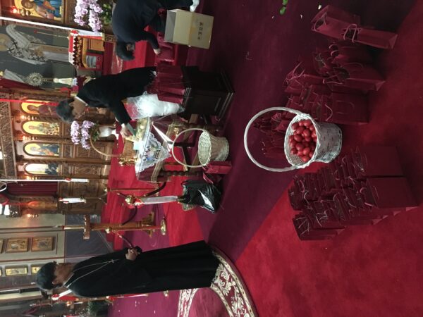 Την Κυριακή του Πάσχα, μετά την Ακολουθία του Εσπερινού της Αγάπης, ο οποίος τελέστηκε, όπως και οι υπόλοιπες Ιερές Ακολουθίες της Μεγάλης Εβδομάδος «κεκλεισμένων των θυρών», οι Κληρικοί με μέλη του Εκκλησιαστικού Συμβουλίου του Καθεδρικού Ιερού Ναού του Αγίου Νικολάου Σεούλ, με ξεχωριστά αυτοκίνητα επισκέφθηκαν τα σπίτια των πιστών για να τους πουν το «Χριστός Ανέστη» και να τους παραδώσουν τα πασχαλινά αυγά και το Άγιο Ευχέλαιο.