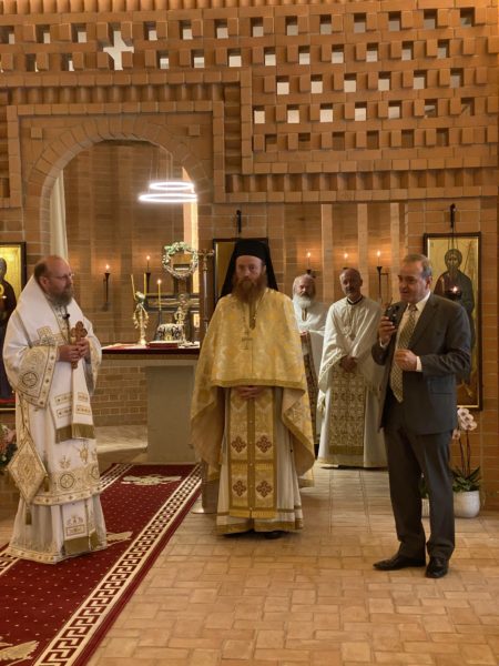 Ο Θεοφιλέστατος Επίσκοπος κ. Σοφιανός ευχαρίστησε θερμώς όλους τους κληρικούς και τους λαϊκούς τους συμμετάσχοντας στην Θεία Λειτουργία, ιδιαιτέρως δε τον εορτάζοντα πρόεδρο του Τμήματος δρ. Κωνσταντίνο Νικολακόπουλο. Η Ρουμανική χορωδία έψαλλε προς τιμή του εορτάζοντος τον ρουμανικό ύμνο «πολλά τα έτη».