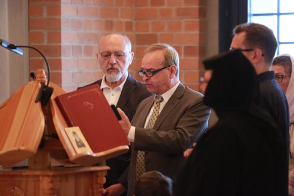 Θεοφ. Επίσκοπος Σοφιανός, ο Ηγούμενος της Μονής Κερνίκας / Ρουμανίας π. Vasil Parjol και ο Καθηγητής δρ. Νικολακόπουλος