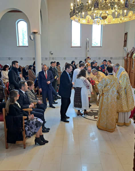 Τους ύμνους της ημέρας απέδωσαν η βυζαντινή χορωδία του ναού, η χορωδία της ρουμανοφώνου ενορίας καθώς και η βυζαντινή χορωδία παιδιών και νέων της ενορίας.