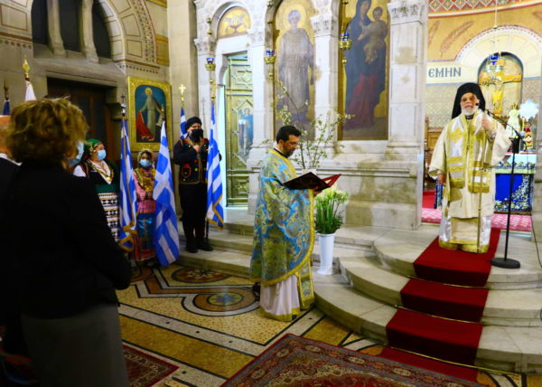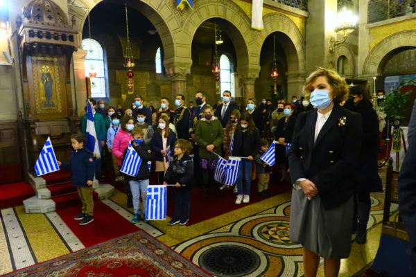 Εν συνεχεία ετελέσθη Δοξολογία για την Εθνική Επέτειο, στο τέλος της οποίας μίλησε επίκαιρα η Εξοχωτάτη Πρέσβυς της Ελλάδος στη Γαλλία κα Άγη Μπαλτά.