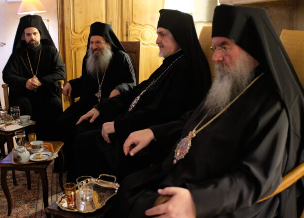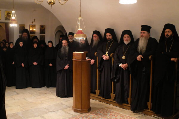 Η Ηγουμένη του Ιερού Μετοχίου Αγίας Σκέπης, μοναχή Υπαντία, εξέφρασε τις θερμές ευχαριστίες προς όλους που προσέτρεξαν να συνεορτάσουν, ενώ ο Γέροντας Ελισαίος επισήμως καλωσόρισε τον ποιμενάρχη, Σεβασμιώτατο Μητροπολίτη Γαλλίας κ. Εμμανουήλ και τους λοιπούς Αρχιερείς.
