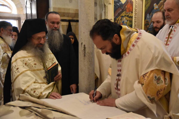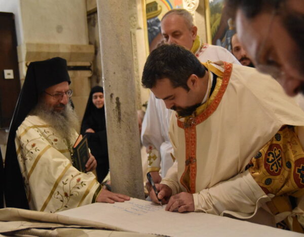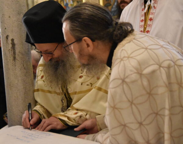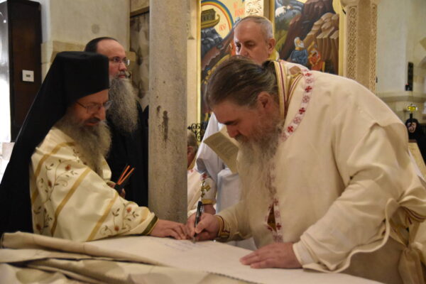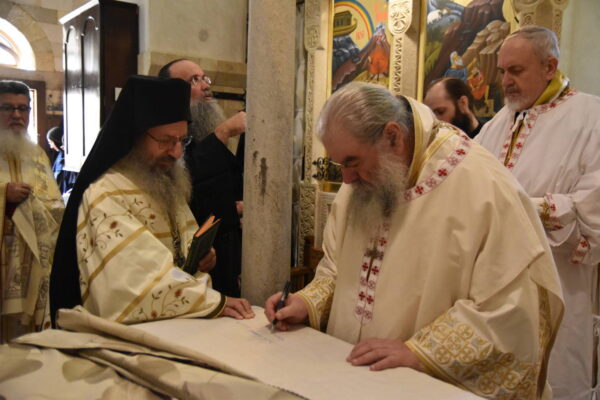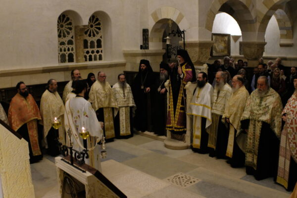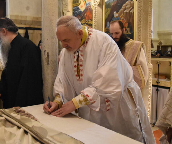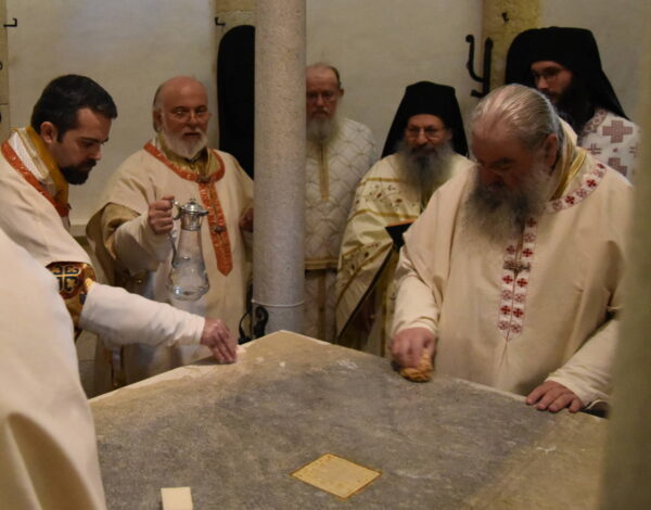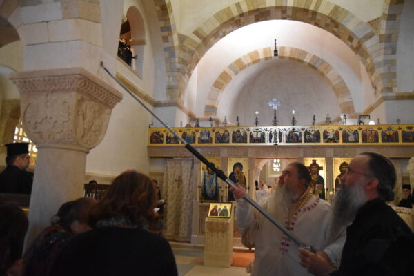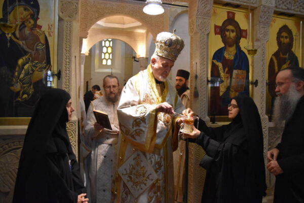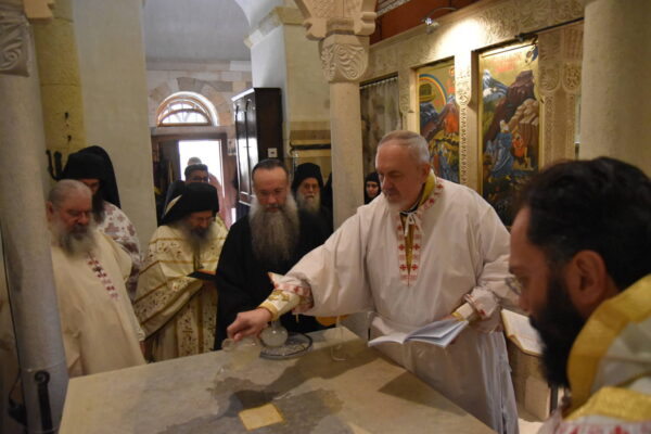 Το Σάββατο το απόγευμα, μετά την επίσημη υποδοχή, έγινε η εναπόθεση των ιερών λειψάνων στο παρεκκλήσιο της Μυροφόρου Αγίας Μαρίας της Μαγδαληνής. Σήμερα το πρωί ετελέσθη η Ακολουθία των Εγκαινίων και αμέσως ακολούθησε πολυαρχιερατική Θεία Λειτουργία.