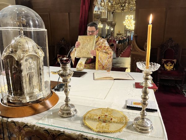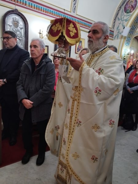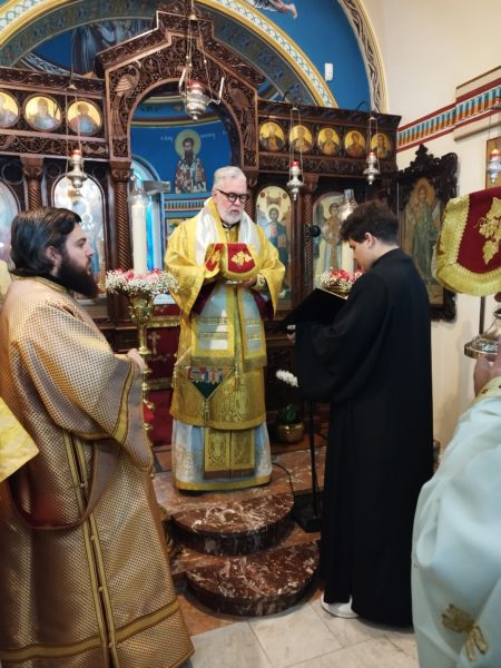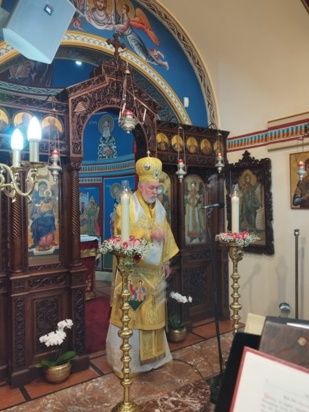 Στο τέλος της Θείας Λειτουργίας ο Σεβασμιώτατος εξέφρασε την ευαρέσκειά του για το ποιμαντικό έργο το οποίο επιτελείται από τον Ιερατικώς Προϊστάμενο της Ενορίας και Γενικό Αρχιερατικό Επίτροπο της Ιεράς Μητροπόλεως Πρωτοπρεσβύτερο του Οικουμενικού Θρόνου κ. Σταύρο Τριανταφύλλου, καθώς και προς τους συνεργάτες του για την βοήθεια την οποία προσφέρουν σε αυτό.